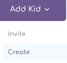 They then select the top right Add Kid, and 2 options appear. By selecting the Invite field, the registration is done via the email address of the kid’s parent/guardian. By selecting the Create field the registration is done via username.