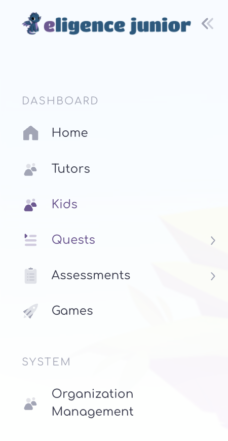 The Organization Administrator, upon logging into the platform, selects the Kids field from the main menu on the left.