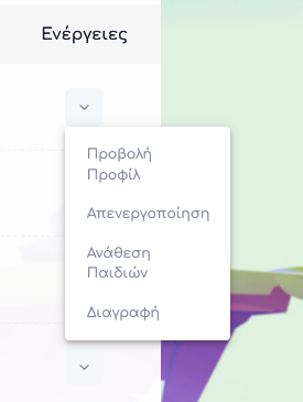 Μόλις ολοκληρώσει την αποδοχή και εγγραφή του στην πλατφόρμα ως συνεργάτης του οργανισμού, θα εμφανιστεί στη σελίδα του οργανισμού ως Ενεργοποιημένος. Μετά την ενεργοποίηση, ο οργανισμός, όποτε το επιλέξει μπορεί να Απενεργοποιήσει το συνεργάτη, να πραγματοποιήσει Ανάθεση σε Παιδί ή και να το Διαγράψει, μέσω των επιλογών που εμφανίζονται στην κολώνα δεξιά με τίτλο Ενέργειες.
