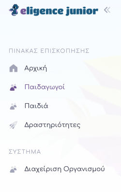 Ο ιδιοκτήτης ενός οργανισμού μπορεί να προσκαλέσει για να προσθέσει έναν Παιδαγωγό σε έναν οργανισμό, επιλέγoντας από το βασικό μενού αριστερά το πεδίο Παιδαγωγοί.