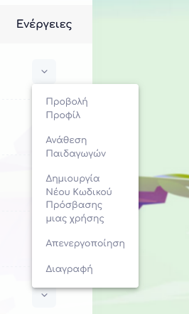 Οι επιλογές εμφανίζονται στη γραμμή του παιδιού στην τελευταία κολώνα Ενέργειες κλικάροντας στο βελάκι.