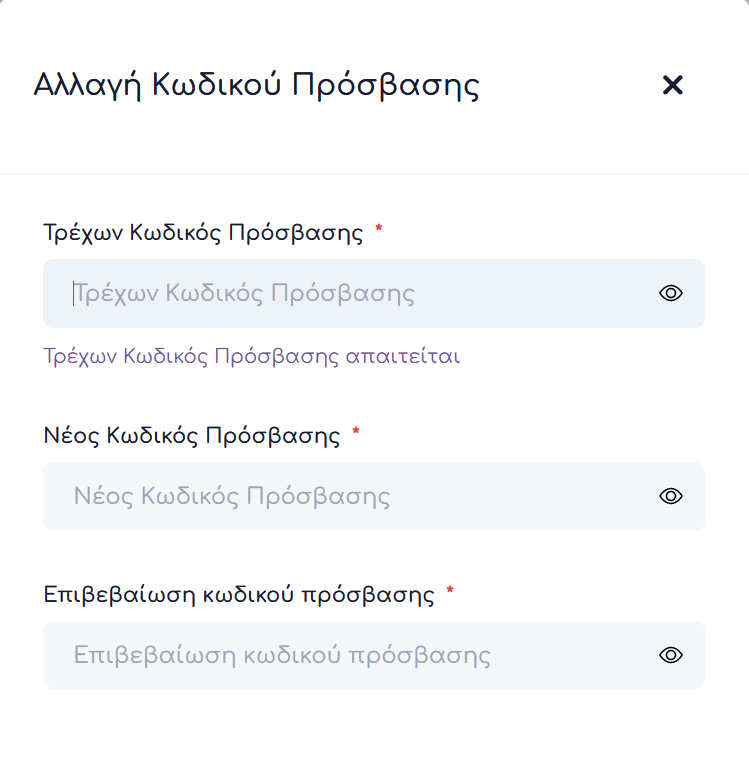 Την πρώτη φορά που θα συνδεθεί στην πλατφόρμα θα εμφανιστεί η καρτέλα για τη δημιουργία Νέου Κωδικού Πρόσβασης, από τον ίδιο.