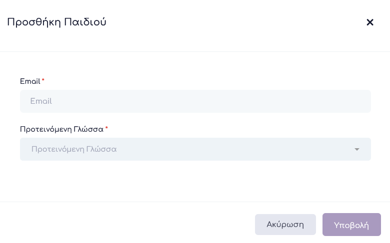 Προσθήκη Παιδιού από τον Διαχειριστή