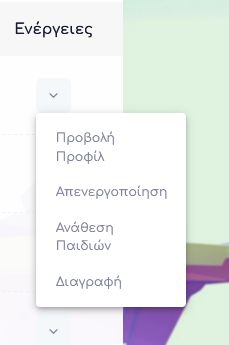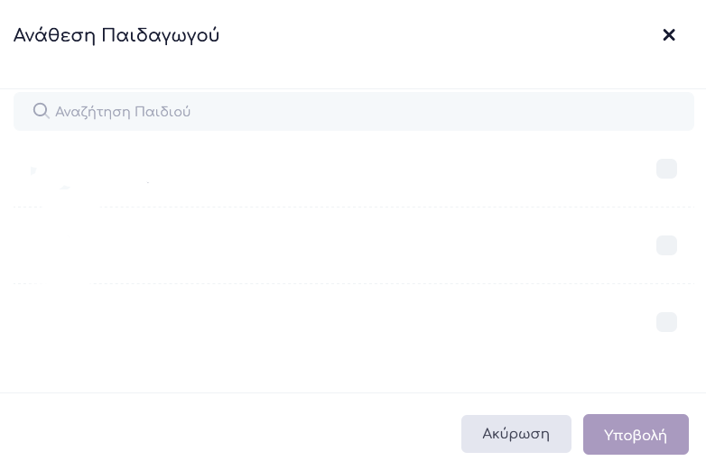 Στη γραμμή του αντίστοιχου Παιδαγωγού ή του αντίστοιχου Παιδιού, κλικάροντας στο βελάκι στην κολώνα Ενέργειες επιλέγετε το πεδίο Ανάθεση Παιδαγωγού ή Ανάθεση Παιδιού αντίστοιχα.