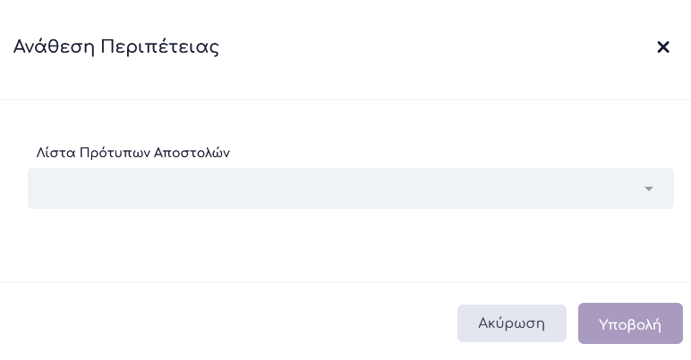 Αν θέλετε να αναθέσετε μία περιπέτεια από Πρότυπο κλικάρεστε στο αντίστοιχο πεδίο Από Πρότυπο και στην καρτέλα που εμφανίζεται επιλέγετε τον τίτλο της περιπέτειας που επιθυμείτε.