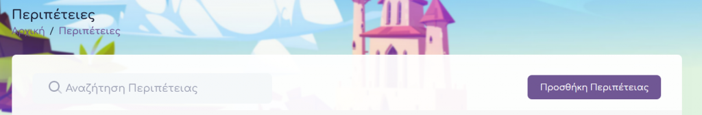 Αρχίζουμε δημιουργώντας μία Περιπέτεια. Επιλέγετε από το μενού αριστερά το πεδίο Περιπέτειες