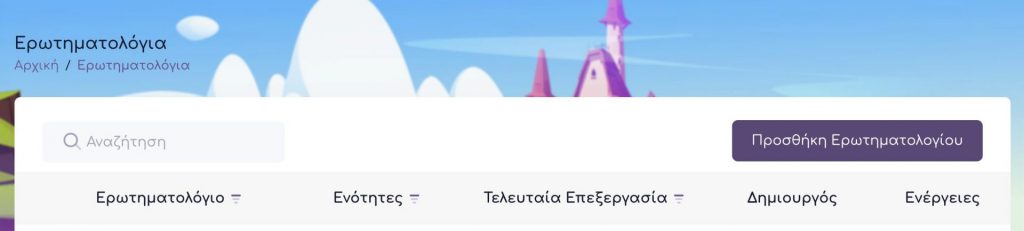 κλικάρετε στο πεδίο επάνω δεξιά Προσθήκη Ερωτηματολογίου,