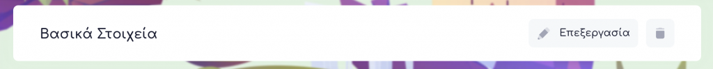 Για κάθε στοιχείο, είτε Ενότητα είτε Ερώτηση, έχετε την επιλογή Επεξεργασία ή Διαγραφή.