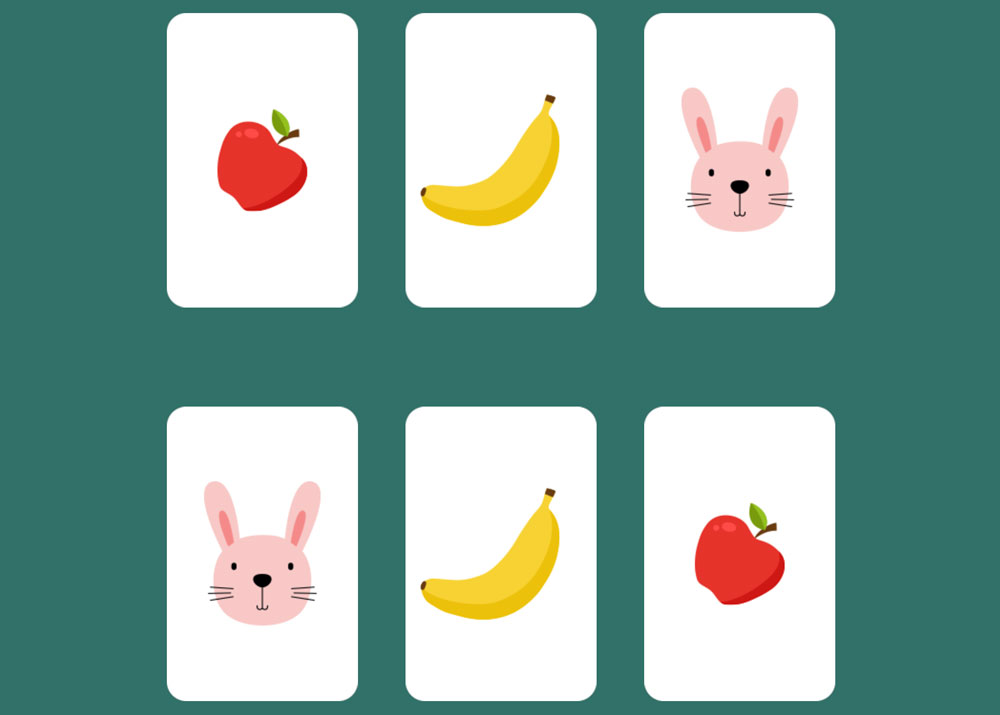 Μια πρόκληση μνήμης μόλις ξεκίνησε! Δες προσεκτικά τις κάρτες που είναι ανοιχτές. Προσπάθησε να θυμηθείς πού βρίσκεται το κάθε αντικείμενο. Όταν νιώσεις ότι τα θυμάσαι καλά, κάνε κλικ και οι κάρτες θα γυρίσουν ανάποδα. Τώρα, προσπάθησε να βρεις και να ανοίξεις τα ζευγάρια καρτών που έχουν τα ίδια σχέδια. Μια εκπαιδευτική δραστηριότητα που εξασκεί τη μνήμη εργασίας και την προσοχή. Τα παιδιά πρέπει να απομνημονεύσουν τη θέση ορισμένων καρτών στην οθόνη. Όταν νιώσουν έτοιμα, πιέζουν το πλήκτρο «έτοιμοι» και οι κάρτες αναποδογυρίζουν. Έπειτα πρέπει να επιλέξουν το σωστό ζεύγος εικόνων. Παράλληλα εξασκούνται στην αντίληψη του χώρου, στον προσανατολισμό και στη λήψη αποφάσεων.