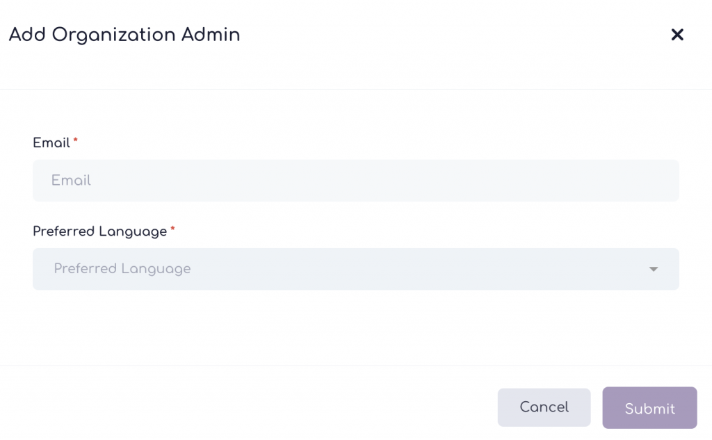 In the new menu, they select the Managers field and then select the top right Add Organization Administrator field, fill in the partner email, the suggested language and finally Submit.