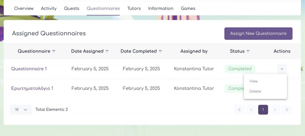 The assignment of a questionnaire to a kid is carried out by the Tutor depending on the type of questionnaire you wish to assign.