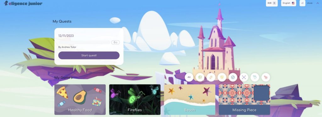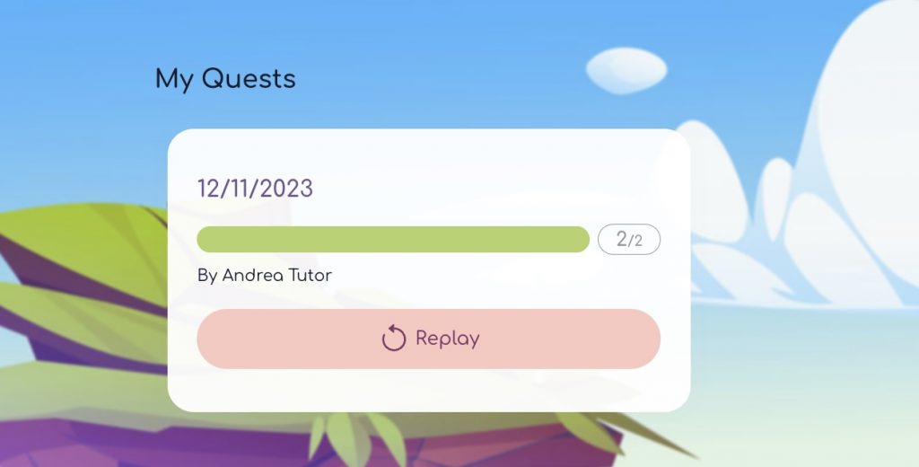 A Quest is a sequence of exercises and activities in content (choice of games), order and level of difficulty per game, decided by the Tutor for the needs of a specific kid.