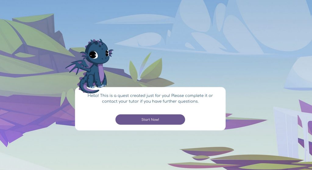 A Quest that has been assigned by the Tutor is displayed at the top of the screen immediately when a kid logs into the platform.