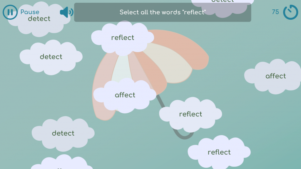 Ready to practice Language by playing with the clouds? “Word Clouds” is a fun word-spotting game for children. Words and syllables appear in clouds, and the child must “pop” the ones they are prompted to find. The game enhances reading skills, focus, and quick thinking. With vibrant colors and sounds, it makes learning enjoyable through play!